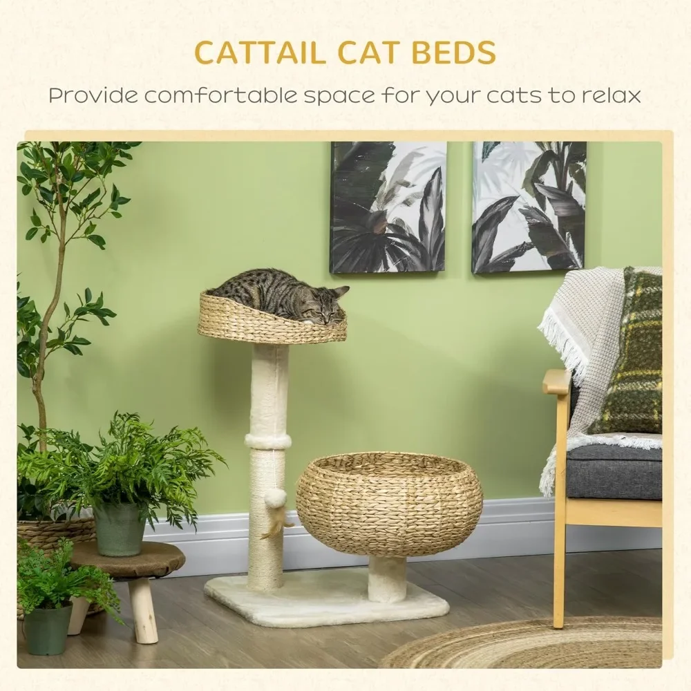 For Sleeping, Playing, and Clawing: With bed, scratcher, and cat toy, this design provides a place for your furry friend to have three of their favorite things: cozy naps, a toy to play with, and a spot they can claw to their desire.