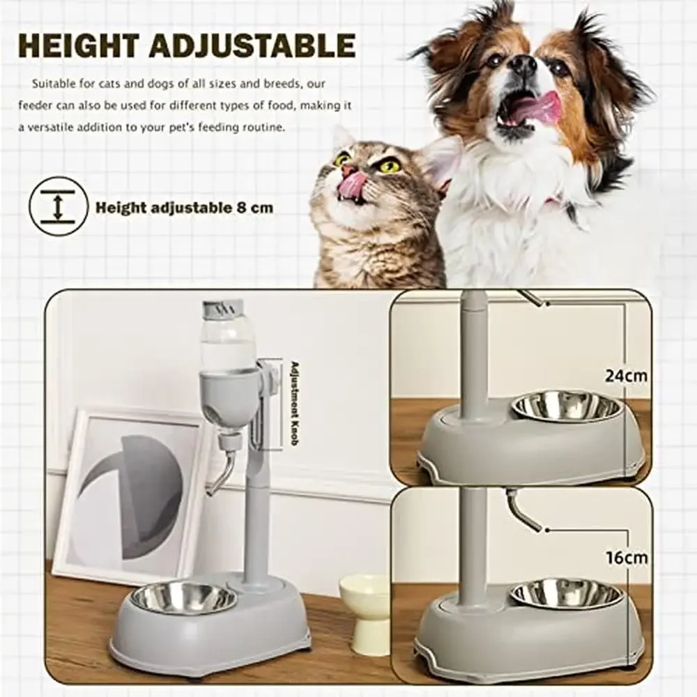 The height of the feeder is adjustable, so it can accommodate pets of different sizes.  In addition, it prevents your pets from getting their fur wet while drinking.  And the feeder is designed with a spherical shape so that your pet can drink easily and comfortably without having to put their head down.