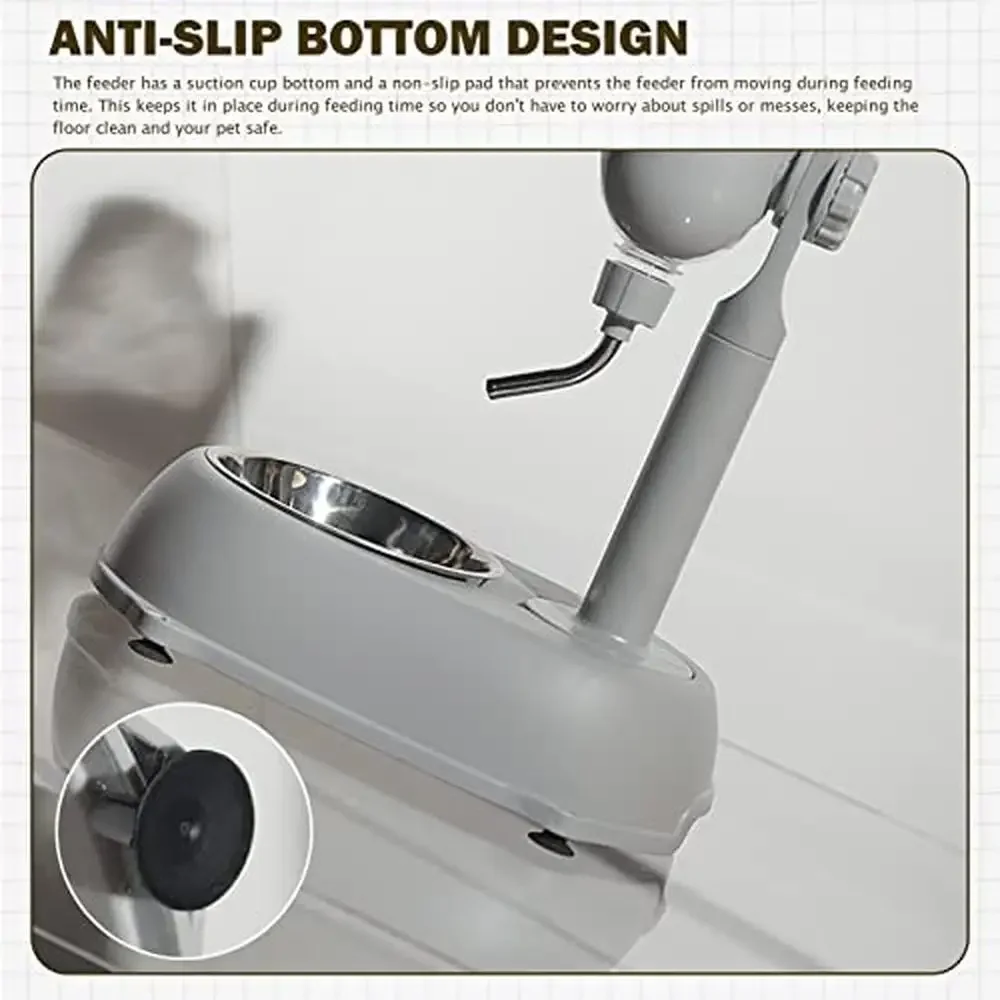 The feeder has a suction cup bottom and a non-slip pad that prevents the feeder from moving during feeding time.  This keeps it in place during feeding time, so you don’t have to worry about spills or messes, keeping the floor clean and your pet safe.