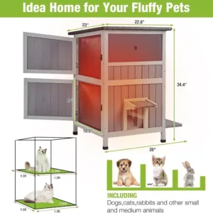 Hight Recommend-Cat cage made of natural fir wood with water based painting,nice for small animals.Asphalt roof keeps pets away from wind and rain. Perfect for indoor and outdoor use