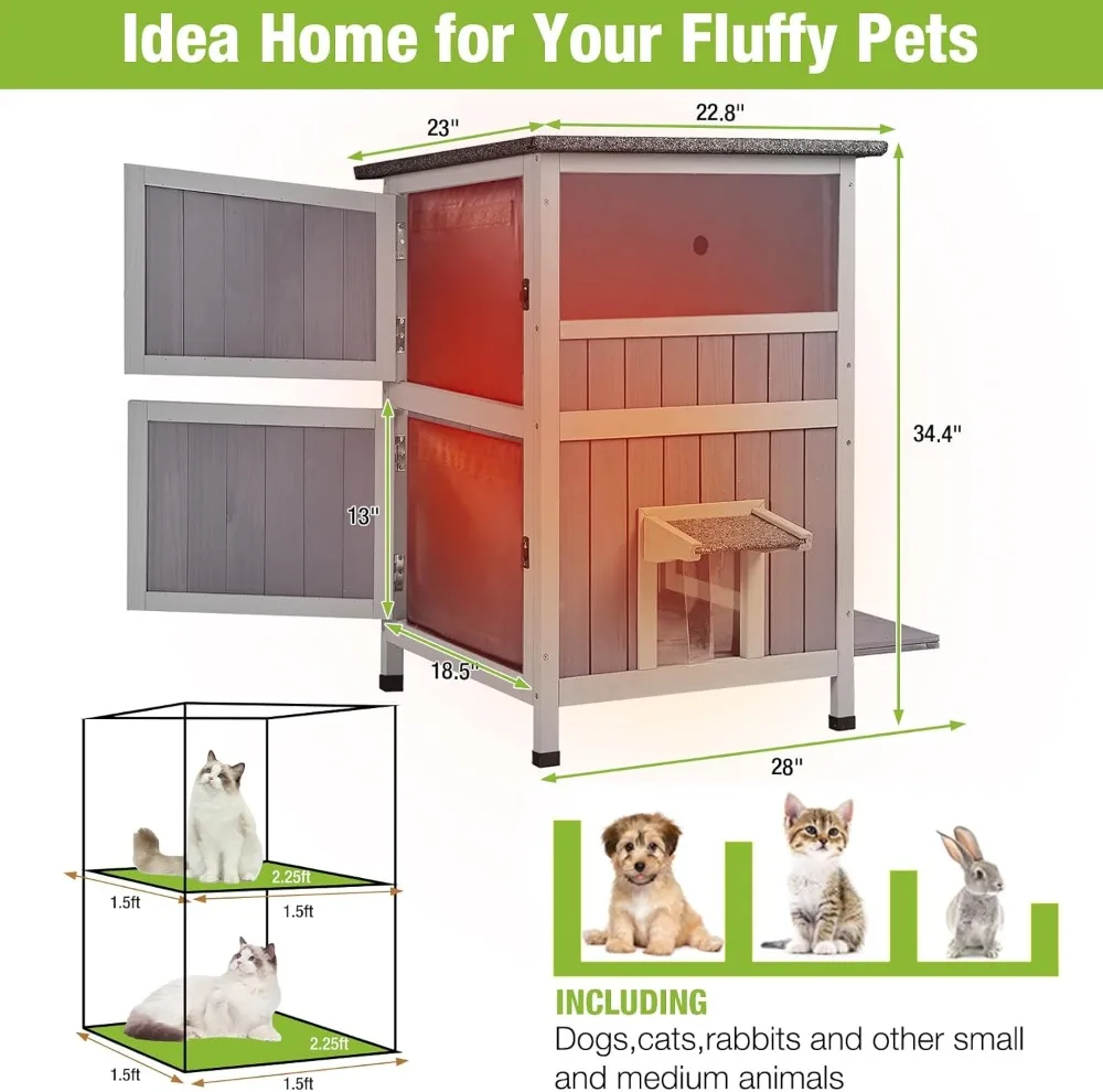 2 Layer-Our cat shelter with thicker floor make the greater bearing capacity for cats standing,playing freely inside.The middle and bottom floor can easy pull out for cleaning.