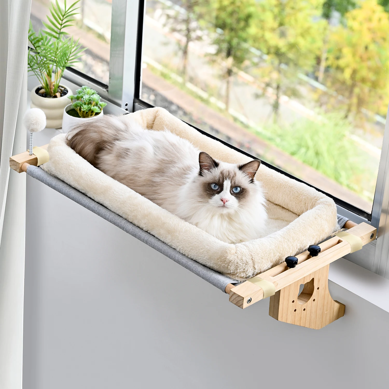 Cat Mattress, Window Hammock Design, Double-Sided Bed, Suitable for All Seasons, High-Quality Hardwood Framework, Suitable for All Kinds of Cats, Can Be Placed in the Window Sill, Floor and Bedside, with Cat Scratching and Playing with Balls