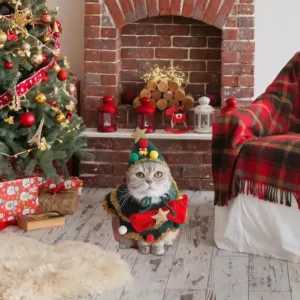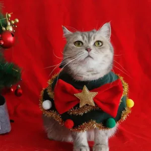 1.Festive Spirit: Get your pets holiday-ready with our cute cat Christmas scarf featuring small balls the edge, a green collar, and a red bow with a star-shaped design. Great for everyday wear or a cute Christmas accessory