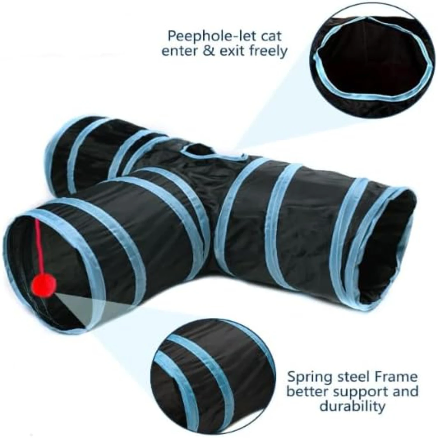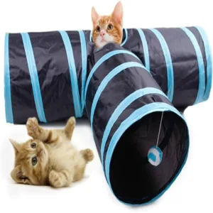 1. The Colorful, Interactive, and Stimulating 3 Way Collapsible Pet Cat Tunnel Tube is the perfect addition to your indoor cat’s playtime. With a peek hole and toy ball, this tunnel provides hours of entertainment and exercise for pets of all sizes.