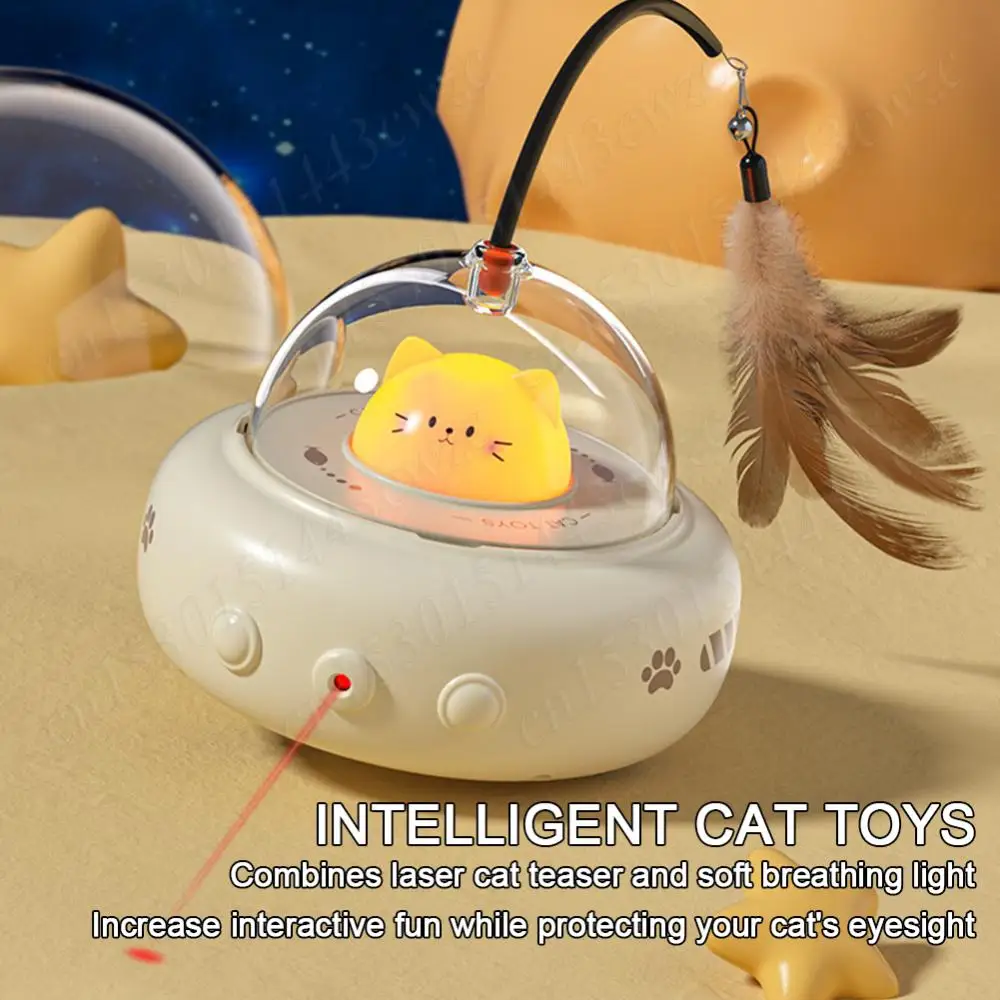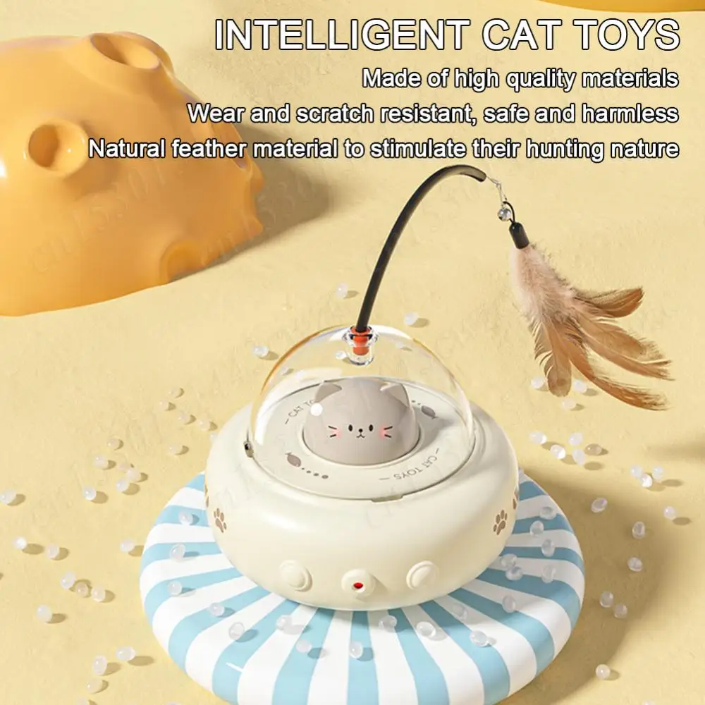 Smart Teaser Cat Toy with Feather Electric Interactive Cat Toys UFO Cat Teaser Stick for Cat Exercise Catcher Chasing Hunting