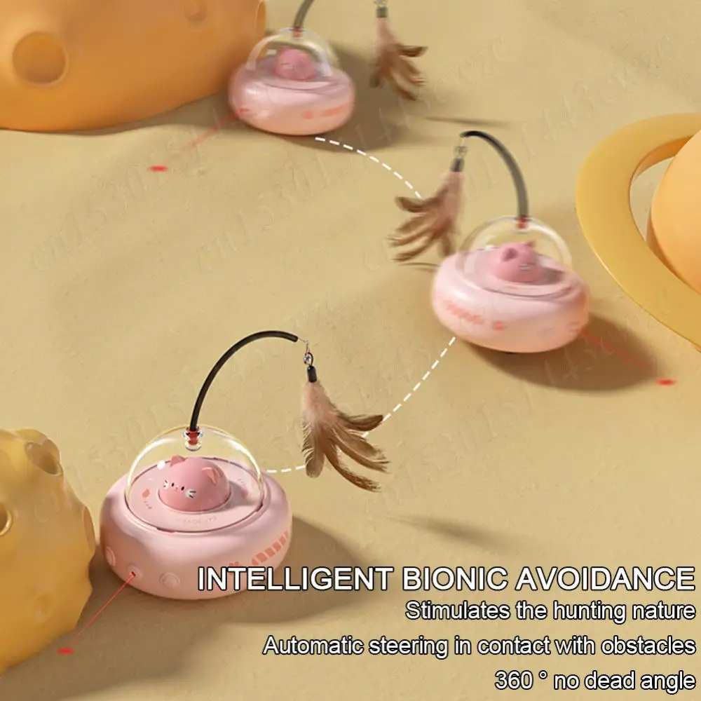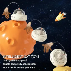 Feature: 1. Hands-Free Fun with Smart Teaser Cat Toy: The smart teaser cat toy features an automatic teasing function, allowing your cat to play independently while freeing up your time-perfect for busy modern lifestyles. 2. Safety First with Interactive Cat Toys: These interactive cat toys come equipped with automatic obstacle avoidance technology, intelligently identifying and dodging obstacles to ensure your cat plays safely. 3. Natural Play with UFO Cat Teaser Stick: The UFO cat teaser stick uses natural feather materials to closely mimic a cat’s instinctual reactions, stimulating their hunting instincts for engaging playtime. 4. Exciting Play with Training Pet Toys: Combining teasing with gentle breathing lights, these training pet toys enhance interactive fun while protecting your cat’s eyesight, offering a safe and stimulating experience. 5. Long-Lasting Play with Cat Teaser Wand: The cat teaser wand boasts powerful battery life, supporting extended, high-frequency interaction on a single charge, minimizing the need for frequent recharging. Specification: