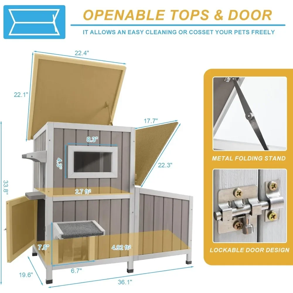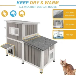 Be the first to review “Feral Cat House Outdoor Cats Shelter Weatherproof Large Wooden 3-Rooms Stray Cat Shelter Indoor 2 Story Cat House for Feral Cats” Cancel reply