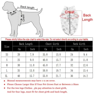 XL:Back Length:40cm/15.7Inch ; Chest Girth:55cm/21.7Inch ; Neck Girth:36cm/14.2Inch ;