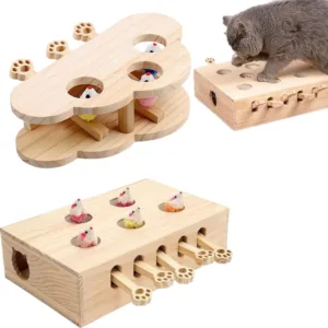 3. Eco-Friendly Materials: Crafted from solid wood, this whack a mole cat toy features polished, rounded edges for safe play. It’s environmentally friendly and non-toxic, with realistic plush mice and soft pom-poms to ensure a captivating and safe experience for your cat.