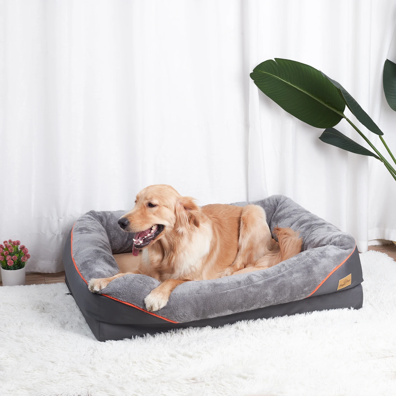 【BolsterRim Edge】BingoPaw dog bedding creates a warm area where your large dogs can rest, sleep, lounge and feel cozy, giving them personal space. Fully bolster rim sides that filled with PP cotton, won’t easy to loseits shape, provides support and a sense of securityfor your pet can rest his head on