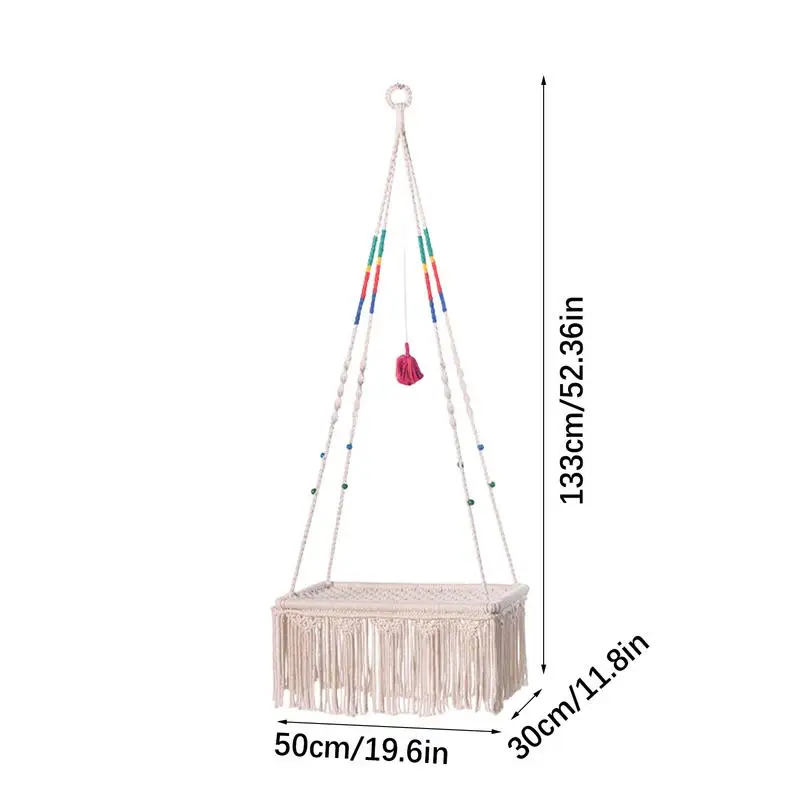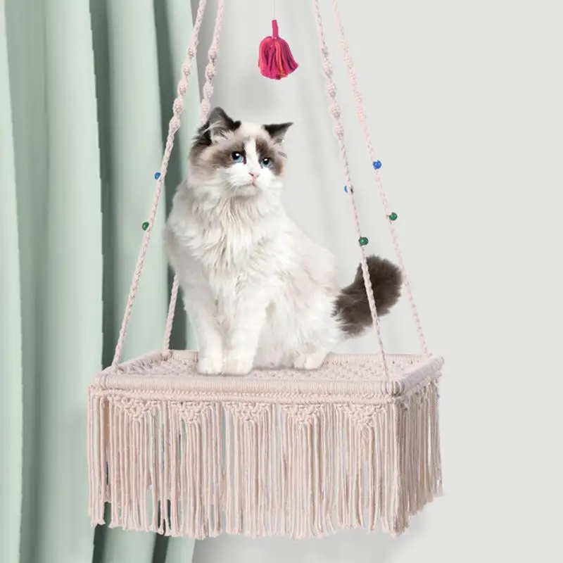 3.Easy Application: With our Macrame Cat Hammock, your furry friend can experience constant fun and excitement without any hassle. It requires no assembly and can be hung right after receiving, providing perfect convenience and more fun for your feline companion.