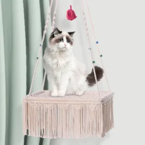 1.Space Efficient: Delight your pet with our macrame cat hammock. It’s space-efficient design ensures a stable and comfy retreat woven from excellent cotton rope, freeing up more room in your home.