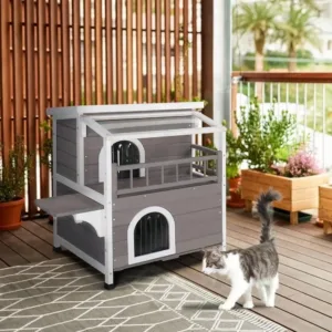 Be the first to review “Outdoor Wood 2-Floor Cat Condo Pet House Kitty Shelter With Stairs Balcony”