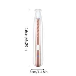 Bullet Points:1.Low Noise: Easily shave your pet’s body with our trimmer featuring ultra-low noise technology that works at less than 35 decibels, preventing stress and fear2.Precise Trimming: Achieve a more effortless and accurate trimming experience when working on your pet’s smallest parts. Easily handle hair around the paws, face, eyes, and remove ear wax for a safe and precise trim3.Convenient Carrying: Our dog paw trimmer provides an ergonomic design that ensures comfortable control while grooming. With a USB charging port, it’s easy to charge and continue using the trimmer even when you’re outdoors4.Useful Light: Featuring an LED light for enhanced visibility, this dog paw trimmer allows for precise trimming. Trim with confidence, avoiding over-cutting, and trim as close as you need with ease5.Widely Used: Give your furry friend a simple spa day with our dog paw trimmer. Suitable for cats, rabbits, and small dogs, it provides a comfortable and secure nail trimming experienceOur paw trimmer for dogs features ultra-low noise technology and is perfect for easily shaving.Specification:Material: PPNet weight: 150gProduct size: about 16x3x2cm/6.3×1.18×0.79 inchesVoltage: 3.7VPower: 5WCharging time: 90 minutesUse time: 120 minutesPack List:Dog paw trimmer*1Cleaning brush*110ml oil*1Cutter head*1Charging cable*1