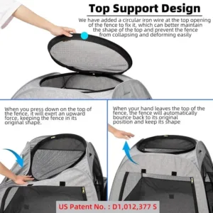 Zippered Opening Design: The top zipper allows you to easily place fresh water, or toys. It provides easy access. You was able to keep him safely contained when you wasn’t able to monitor him. It’s also nice for outdoor use if you wanted to place the enclosure on your lawn.