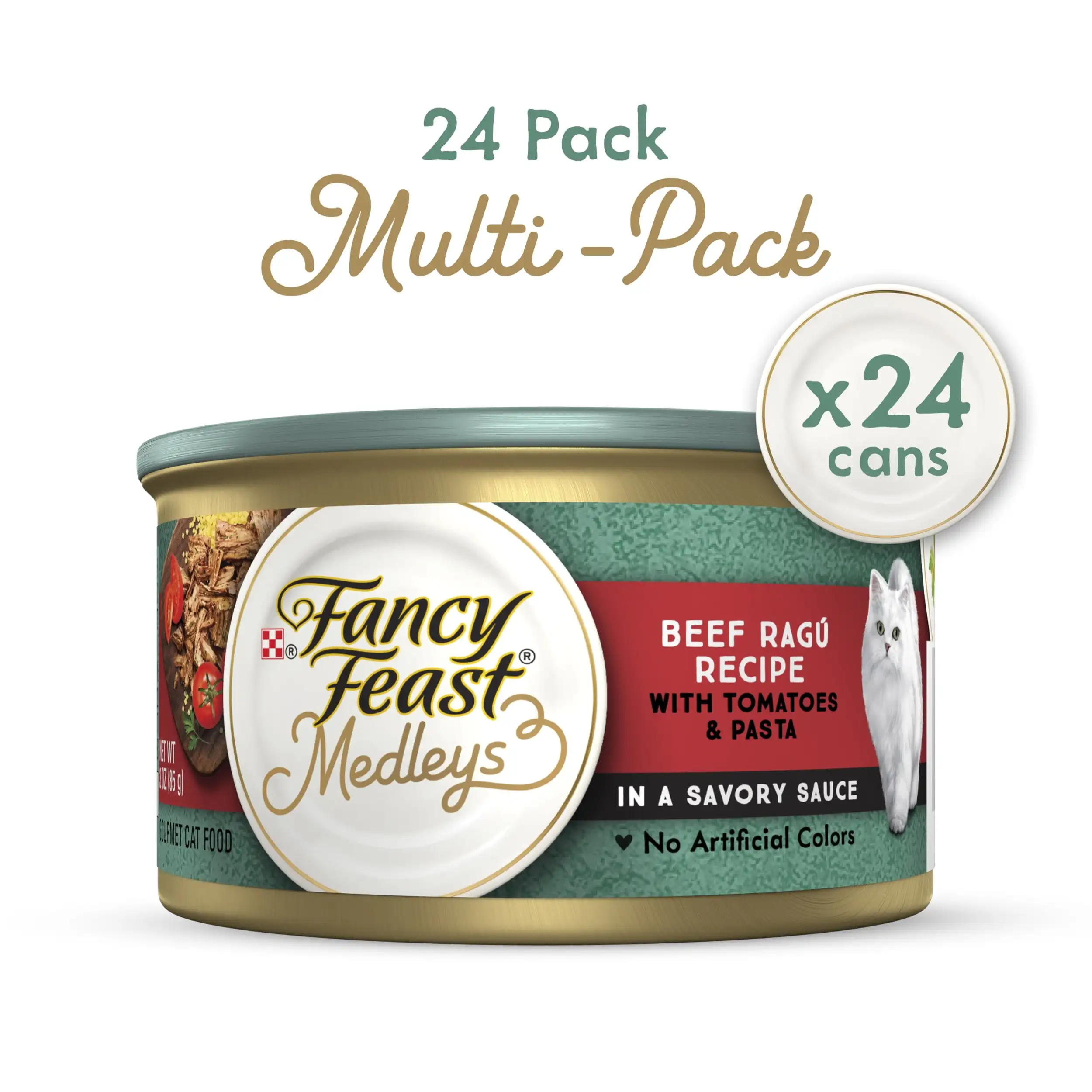 [‘purina Fancy Feast Medleys Wet Cat Food Beef Ragu, 3 Oz Trays (24 Pack)nfancy Feast Shredded Cat Food Is Made Without Artificial Color Or Preservativesnexceptional Combination Inspired By Dishes Around The Worldnfancy Feast Canned Cat Food Shreds Developed With Real, High-quality Ingredientsn100% Complete And Balanced For Adult Catsncanned Cat Food Shreds Crafted In Partnership With Our Expert Chefs And Nutritionists’]
