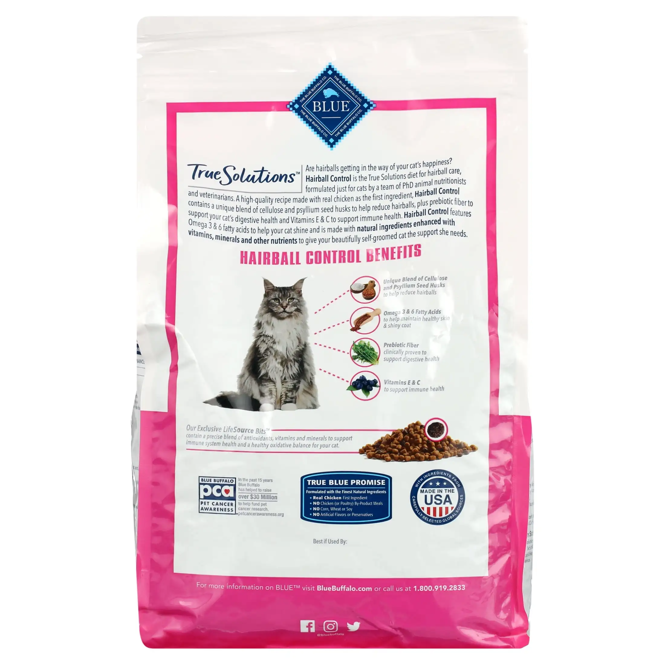 [“hairball Care Formula: This Blue Buffalo Dry Cat Food Help Reduce Hairballs And Maintains Digestive Health With Clinically Proven Prebiotic Fibernformulated By Veterinarians & Animal Nutritionists: True Solutions Offer Natural Nutrition With Clinically Proven Ingredients Recommended By Veterinariansnreal Chicken First: This Blue Buffalo Cat Food Is Made With Eal, High-quality Chicken As The # 1 ingredientnhealthy, wholesome ingredients: blue buffalo natural cat food is made with no chicken (or poultry) by-product meals and no corn, wheat, or soynpackaging may vary: contains one (1) 3.5-lb. Bag of blue true solutions hairball control dry cat foodnenhanced imagery: we have enhanced our digital product packaging to highlight our products’ ingredients and essential benefits. While the physical packaging will vary slightly, all information is accurate”]